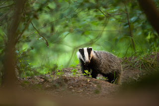 Yesterday after work, I went back to the badger sett. Since it is quite a long drive, I have to be sure the evening weather will feature clear skies before I even go there. With gloomy skies, it is way too dark in the small forest edge for photography. With good weather and thus good hopes, I drove up to the nature reserve where the sett is located. As soon as I opened the car door, the good hopes were gone with the wind (even with calm weather). The farmer who owns the meadow adjacent to the hedgerow was busy mowing the edges of his cow-grazed lawn with a very, and I mean very, loud gasoline-driven lawnmower. Only meters away from the sett, which I guess he does not even know is located there.