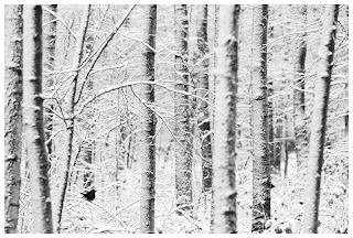 These ‘cops of the forest’ usually are very suspicious and difficult to photograph, but with a dense snow cover, they cannot resist the nuts put out for them at the feeding station. On Sunday, I went to the local fishing ponds. Because the area is closed to visitors who don’t have a permit, it is a quiet place and it therefore teems with birds and mammals. Unfortunately, there were hardly any holes in the ice, so my hopes for foraging Bitterns, Rails and Kingfishers went idle. As for the mammals, I found loads of animal tracks in the snow and on the ice. At least 4 different fox trails, a lot of Roe Deer hooves and tiny tracks of mice and squirrels. But, no fur in front of the camera. I did photograph some landscapes I am happy with and also some rather graphic images of Coots and Blackbirds in the snow. Above an example.