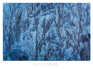 Twee weken geen camera aangeraakt. Het weer werkt niet mee en de inspiratie is even ver te zoeken. Maar dat geeft niet, ik ben lekker gaan rondstruinen, heb mogelijke projectjes voorbereid en had prachtige ontmoetingen met reeën en zelfs vier zeugen van het wild zwijn met piepkleine jongen. Ze plonsden met veel kabaal het riet in toen ze me doorhadden. Vanaf dat moment kon ik ze niet meer zien, maar horen kon ik hun oinken, knorren, piepen en steunen des te meer. Geweldig. Enkele minuten later struikelden drie mini-biggetjes door het riet, tijdelijk van hun mama gescheiden. Zo klein had ik ze nog nooit gezien, en hun zagende contactroep verbaasde me enorm. Bovenaan een foto van een koude en winderige ochtend, twee weken geleden. Weinig tijd en geen zin om ver weg te gaan. Dat hoefde ook niet, want toen ik deze prachtige structuren op de autoruiten zag, leek het me een misdaad tegen de edele kunsten deze weg te krabben. En dus bracht ik de ochtend met de macrolens door op de parkeerplaats.