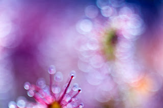 An awkward cold got the better of me, so I decided to be wise for once and get some rest during the weekend. I did not go out to photograph, hence I present an image I shot some three weeks ago. Spoon-leafed Sundew (Drosera intermedia, Kleine Zonnedauw) are interesting little plants. Not only because of their meat-eating lifestyle, but also for the photographer. The sticky moisture on their leaves is always present, it has nothing to do with dew or rain. The fluid is used to catch insects and damselflies. With a macrolens, extension tubes and converters, you can obtain enormous magnification, and with the right kind of light, the droplets create wonderful shapes.