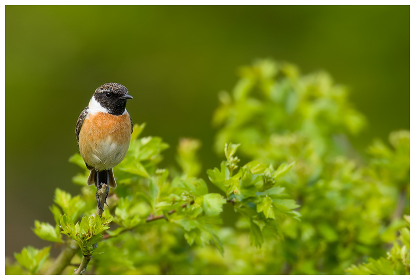 Angry-faced Stonechat; Canon 1D Mark III w. 500/4 IS and 2x; 1/320 at F 10 and ISO400; tripod from hide.