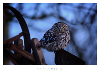 My favourite of the day however is this image, taken long before sunrise. I like the contrast between the bluish predawn colors and those beautiful yellow eyes that look right through you. Now that the owls seem to have taken residence in the nesting box, and given the positive breeding results of the previous years at this location, I am confident this project will provide me with many fun hours over the next weeks.