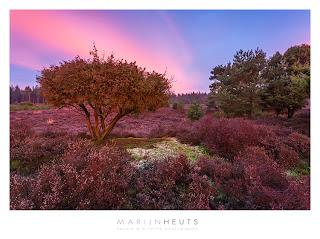 Recently, when shooting landscapes at my favourite playground, it dawned on me that I might be ‘done’ with the location. I found myself shooting from the same (tested and tried) vantage points over and over again, seldomly improving on the photographs I had taken before. So time to move on. I spent a morning traversing the area and came at another open spot in the forest. Small, even smaller than the others, and only one fen. Also, much harder to get to. But, it is quite undulating terrain and it features several beautifully sculptured juniper bushes. So I decided to settle on the location for the coming months and see what I can get. Already on the first try, I had a very decent surise to play with. I shot against the light, but the contrast was so enormous that even with exposure blending, I failed to get a result that looked even remotely realistic. When I turned around, I was truck by what I saw. The pink bands across the sky were beautiful, and the juniper bush and barren heather was lit by the red rays of the rising sun. Surreal colors, almost a warmed up version of the northern lights, or Dutch aurora if you wish. Although I have yet to find the perfect vantage points and have to get to know the location better in all seasons, the start is promising and I look forward to shoot the area in snow or when the heather is in full bloom.