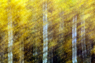 I decided to stick to the yellows of the birches and see what I could get. The regular photographs were nice, but nothing special. The weather was rather bland with a grey sky, and I had hoped to combine the yellows with a pink sunrise. So instead I zoomed in on the trees and things immediately started to look better. Only when I got to the point where moving the camera during a long exposure was involved, did I really like the results. As usual with this technique, the vast majority of photographs ends in the enormous round archive and only a handful delivers something worthwhile. To me this image represents the day best: strong, vibrant colors, the rustle of leaves in the autumn wind, and the trunks of the birches prominently in front, because they are what eventually will be left of the tree when winter sets in. The use of a polarizer further enhanced the saturation of the leaves and the contrast in the image.